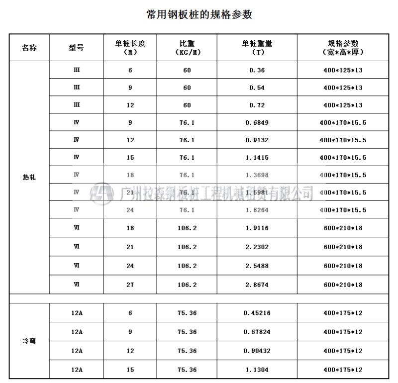 熱軋、冷彎鋼板樁交貨長度為6m、9m、12m、15m、18m、21m、24m、27m,