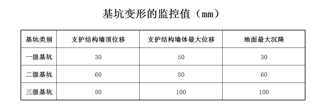 一級基坑:重要工程,支護(hù)結(jié)構(gòu)與基礎(chǔ)結(jié)構(gòu)合一工程,開挖深度>10m,臨近建筑物、重要設(shè)施在開挖深度以內(nèi);開挖影響范圍內(nèi)有歷史或近代優(yōu)秀建筑、重要管線需嚴(yán)加保護(hù);