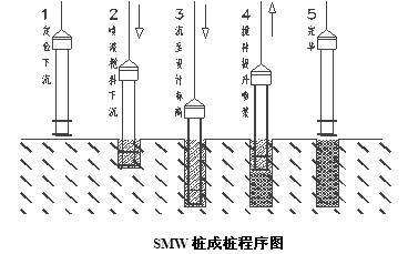 4、SMW鉆拌:鉆掘及攪拌,重復攪拌,提升時攪拌。