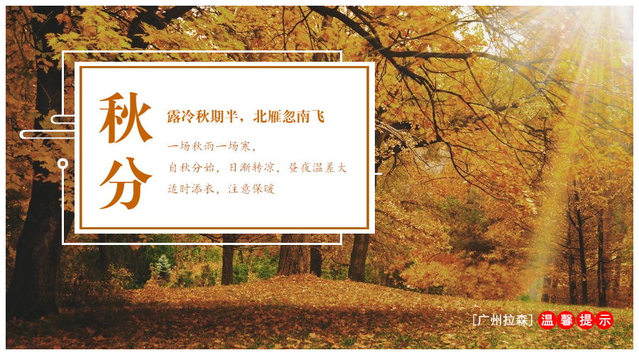 秋分時(shí)節(jié),我國(guó)大部分地區(qū)已經(jīng)進(jìn)入涼爽的秋季,一次次的降水,氣溫也一次次地下降,故而有了“一場(chǎng)秋雨一場(chǎng)寒”、“白露秋分夜,一夜冷一夜”的說法。日漸轉(zhuǎn)涼,適時(shí)添衣,注意保暖。