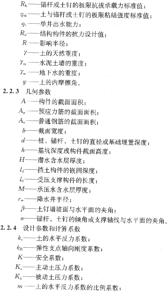 《建筑基坑支護(hù)技術(shù)規(guī)程(第二章 術(shù)語和符號)》