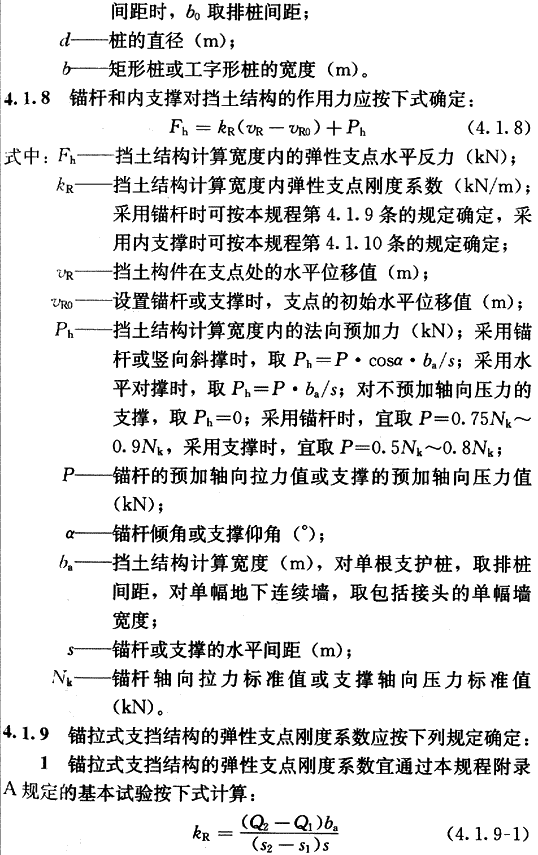 5 錨桿和內(nèi)支撐對(duì)擋土結(jié)構(gòu)的約束作應(yīng)按彈性支座考慮,并應(yīng)按本規(guī)程第4.1.8條確定。