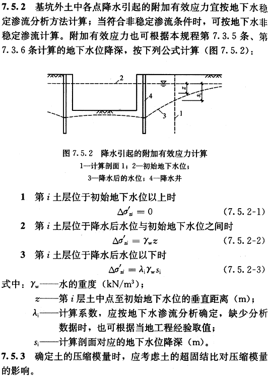 7.5.1 降水引起的地層壓縮變形量可按下式計(jì)算: