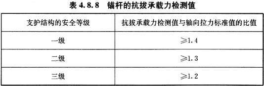 4.8.8 錨桿抗拔承載力的檢測應(yīng)符合下列規(guī)定: