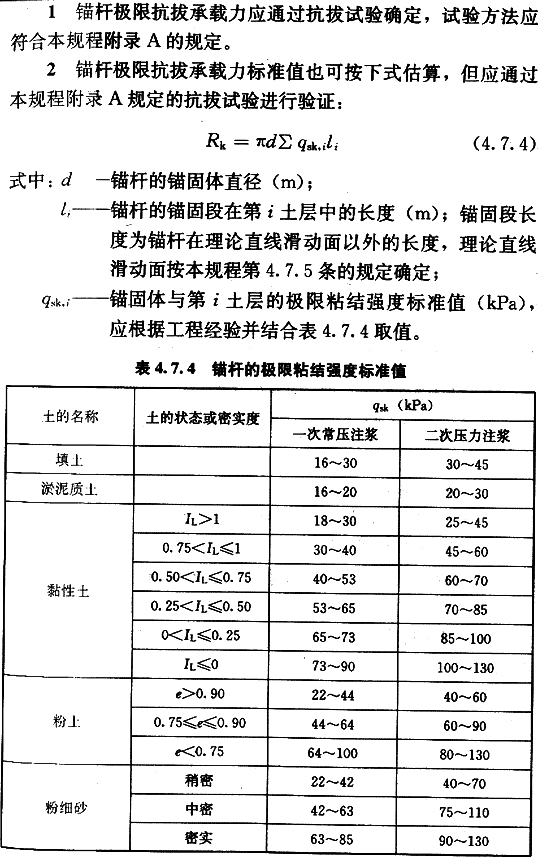 4.7.2 錨桿的極限抗拔承載力應(yīng)符合下式要求: