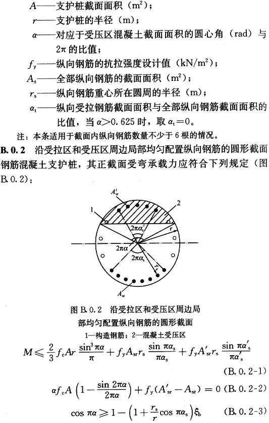 建筑基坑支護技術(shù)規(guī)程(附錄B 圓形截面混凝土支護樁的正截面受彎承載力計算)