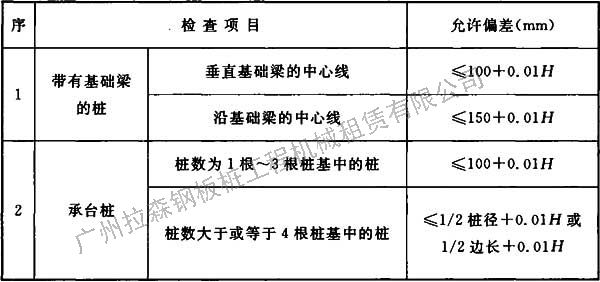 表5.1.2 預(yù)制樁(鋼樁)的樁位允許偏差