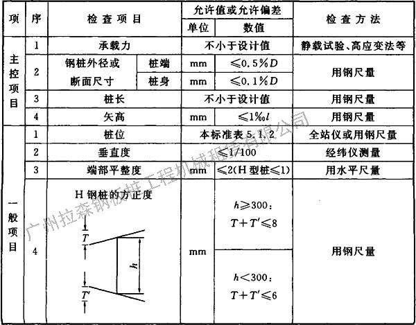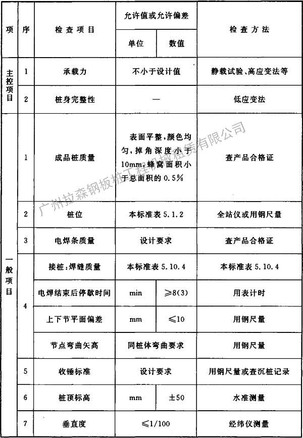 表5.10.4 鋼樁施工質(zhì)量檢驗標(biāo)準(zhǔn)
