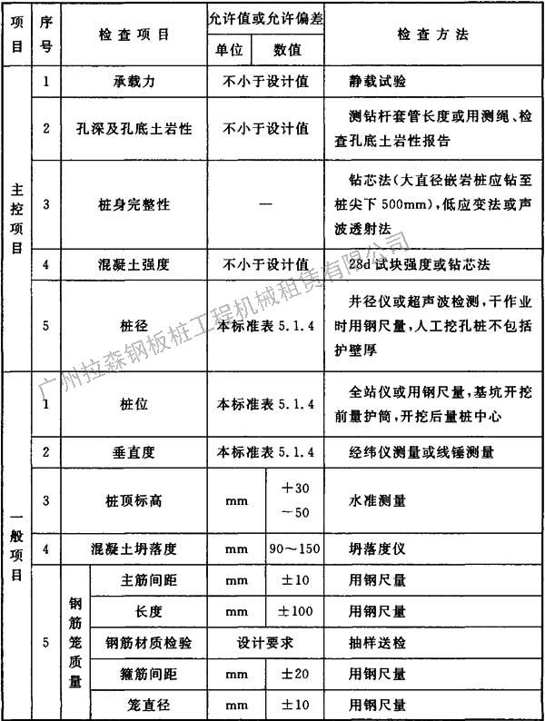 5.7.2 施工中應(yīng)檢驗鋼筋籠質(zhì)量、混凝土坍落度、樁位、孔深、樁頂標(biāo)高等。