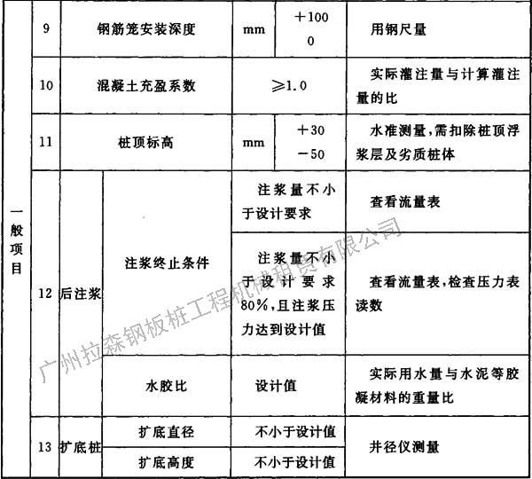 表5.9.4 沉管灌注樁質(zhì)量檢驗標(biāo)準(zhǔn)