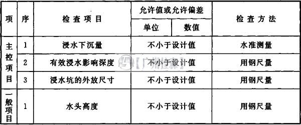 1 施工前應檢查浸水坑平面開挖尺寸和深度、浸水孔數(shù)量、深度和間距;