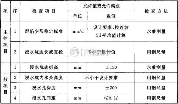 2 施工中應檢查濕陷變形量及浸水坑內(nèi)水頭高度;