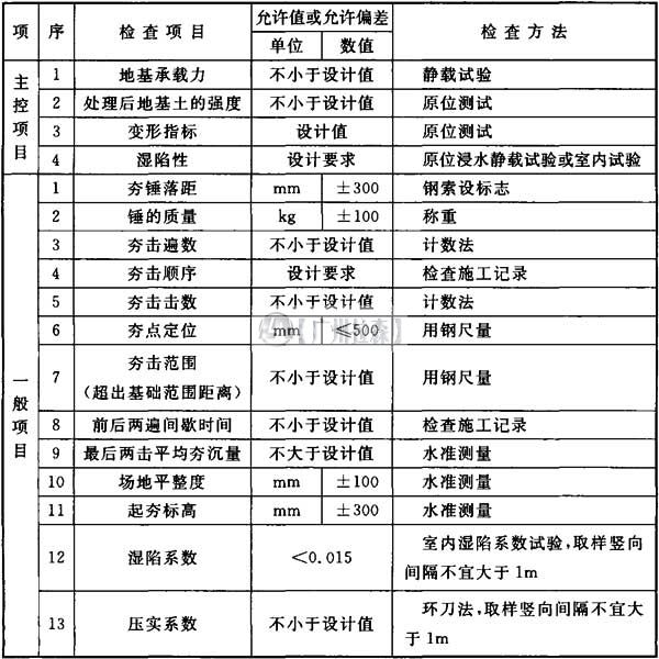 表6.2.2 濕陷性黃土場地上強夯地基質(zhì)量檢驗標準