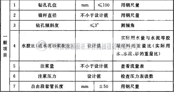 7.11.2 錨桿施工中應對錨桿位置,鉆孔直徑、長度及角度,錨桿桿體長度,注漿配比、注漿壓力及注漿量等進行檢驗。