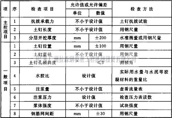表7.6.5 土釘墻支護質(zhì)量檢驗標準