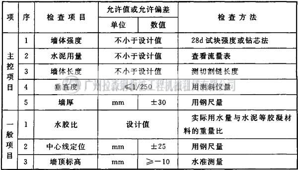 7.2.10 截水帷幕采用渠式切割水泥土連續(xù)墻時,質(zhì)量檢驗應符合表7.2.10的規(guī)定。