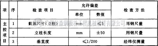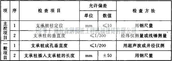 表7.12.5 豎向支承樁柱的質(zhì)量檢驗標準