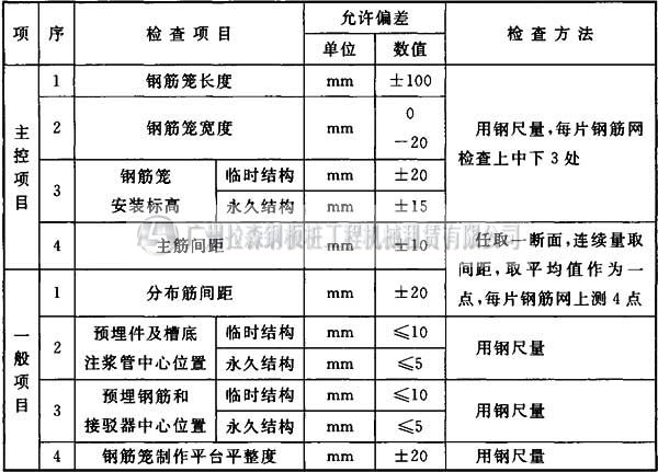 表7.7.6-2 鋼筋籠制作與安裝允許偏差
