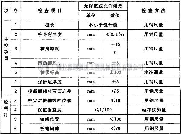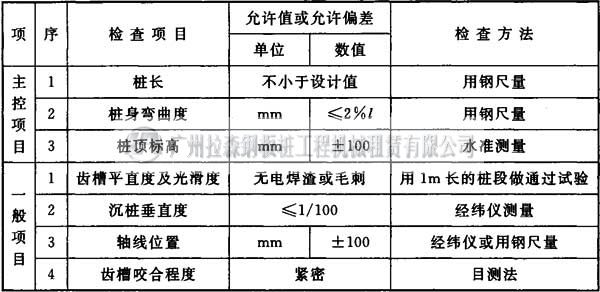 表7.3.2 鋼板樁圍護墻質(zhì)量檢驗標準