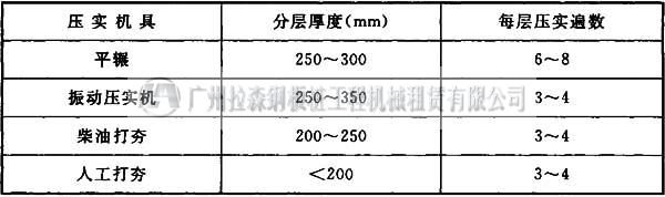 表9.5.2 填土施工時的分層厚度及壓實遍數(shù)