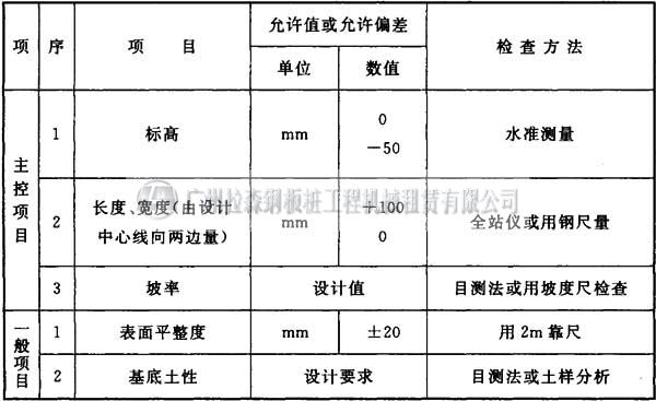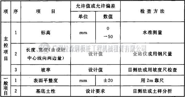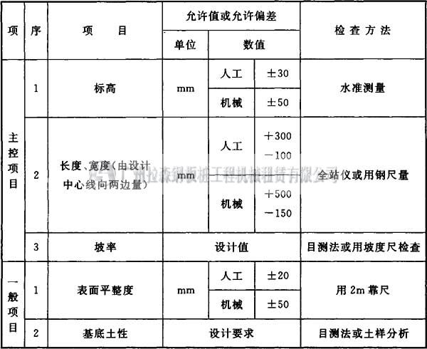 表9.2.5-4 地(路)面基層土方開挖工程的質(zhì)量檢驗標準