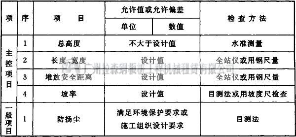 表9.4.5 土石方堆放工程的質(zhì)量檢驗標準
