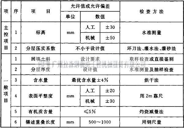 表9.5.4-2 場地平整填方工程質(zhì)量檢驗標準