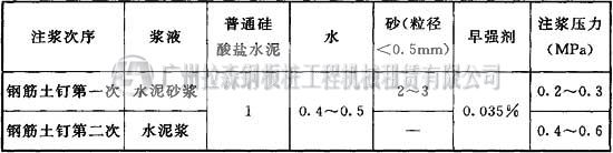 表6.8.3 土釘墻漿液配比和注漿參數(shù)