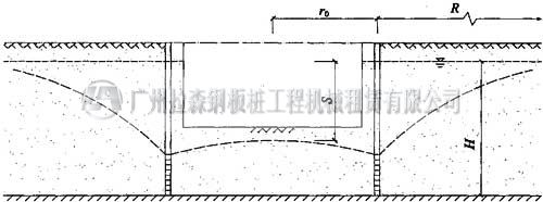 圖7.3.2 均質(zhì)含水層潛水完整井的基坑涌水量計(jì)算
