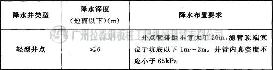 1 井點(diǎn)管直徑宜為38mm~55mm,井點(diǎn)管水平間距宜為0.8m~1.6m(可根據(jù)不同土質(zhì)和預(yù)降水時(shí)間確定)。
