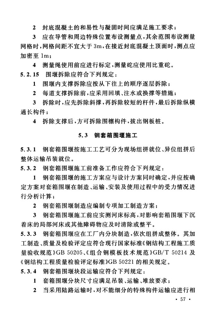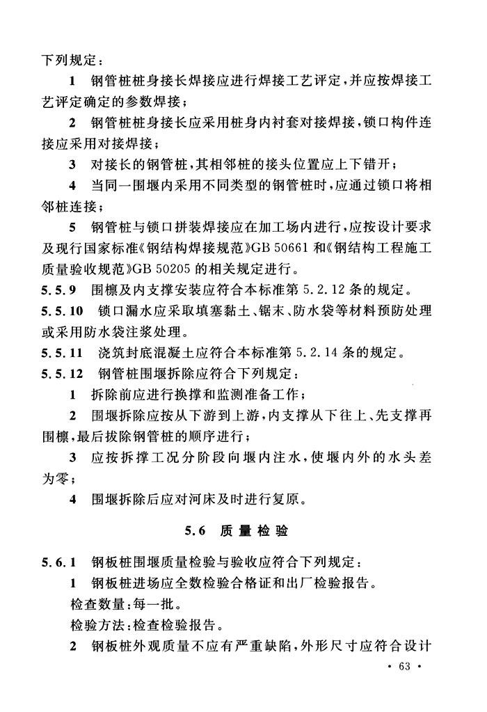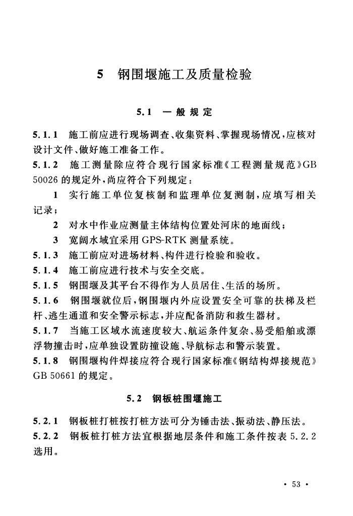 鋼圍堰工程技術(shù)標準(GBT51295-2018)——第五章 鋼圍堰施工及質(zhì)量檢驗