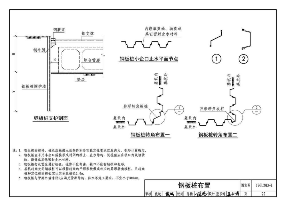 綜合管廊基坑支護標準設(shè)計圖集(17GL203-1)——鋼板樁